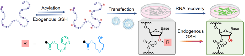 25. Guo, J.;† Chen, S.;† Onishi, Y.; Shi, Q.; Song, Y.; Mei, H.; Chen, L.; Kool, E. T.; Zhu, R.-Y. “RNA Control via Redox-Responsive Acylation.” Angew. Chem. Int. Ed. 2024, 63, e202402178. († Equal contribution) (Highlighted by NUS Science, EurekAlert!, ScienceDaily, SCIENMAG)
